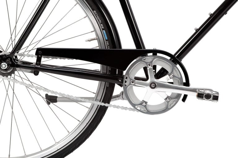 The Bordeaux is equipped with mounting points for front and rear racks to extend your cargo capabilities and can also fit a chain guard to protect your pants.
